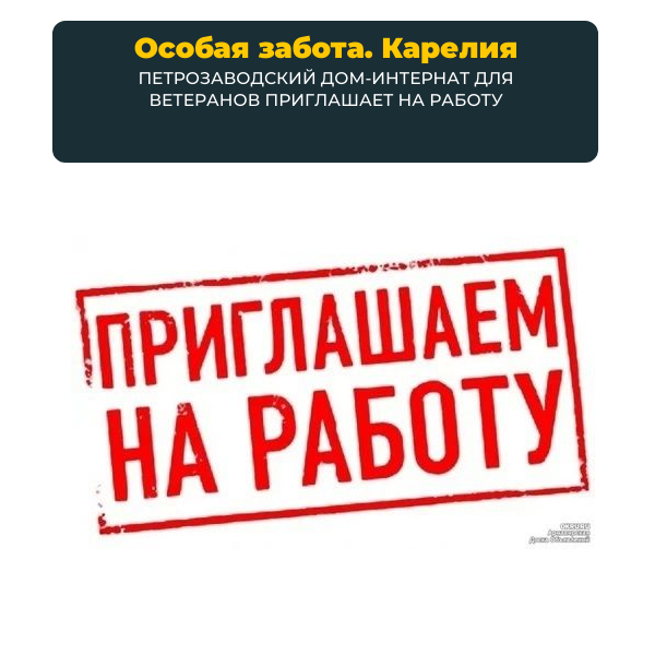 Петрозаводский дом-интернат для ветеранов приглашает на работу.