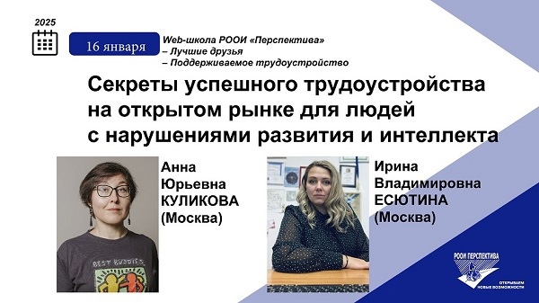Второй вебинар программы 05.12.2024 – 16.01.2025, рассказывающей о технологиях в области трудоустройства людей с нарушением развития и интеллекта.